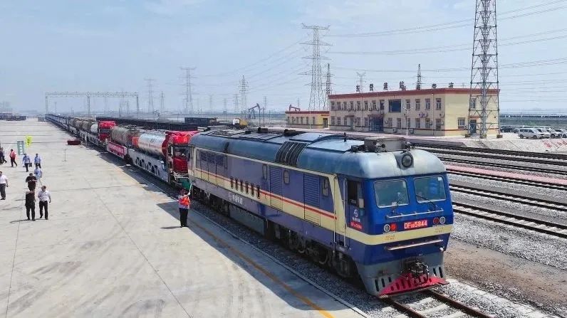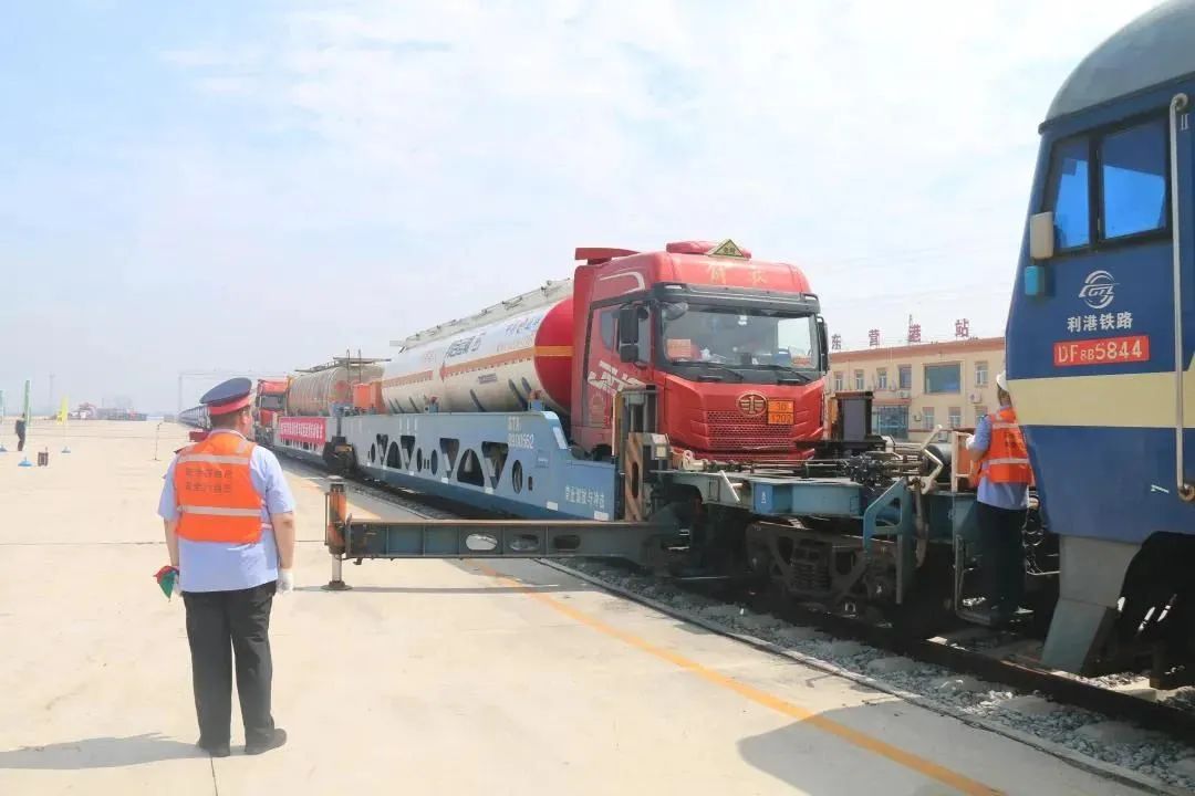 近日,我国首列公路罐车驮背运输试验列车在山东省东营成功开行,该列车由中车齐车集团与国能铁路装备公司联合研制的STX系列多功能驮背运输车编组而成。其成功开行,开启了我国“驮背运输+公路罐车危险货物”公铁联运新模式。